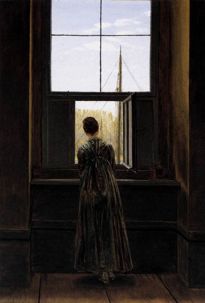 Hand-finished oil painting reproduction of “Woman at the Window” by David Friedrich Caspar — rich texture, ready for framing.